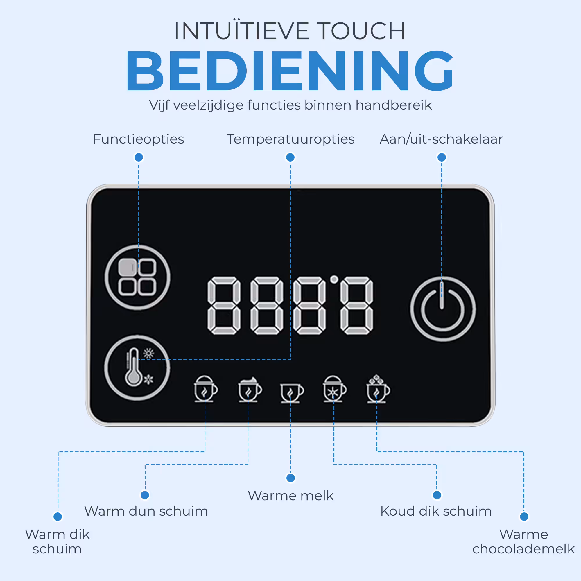 Maak je favoriete koffie- en chocolademomenten compleet met de NovaWare Melkopschuimer! Dit 5-in-1 apparaat biedt alles wat je nodig hebt om heerlijke warme en koude schuimen te maken, van een romige cappuccino tot een perfecte latte of warme chocolademelk. Dankzij het digitale bedieningspaneel en de automatische uitschakeling is het apparaat niet alleen gemakkelijk te gebruiken, maar ook veilig en efficiënt. Geniet van barista-kwaliteit schuim in een handomdraai!