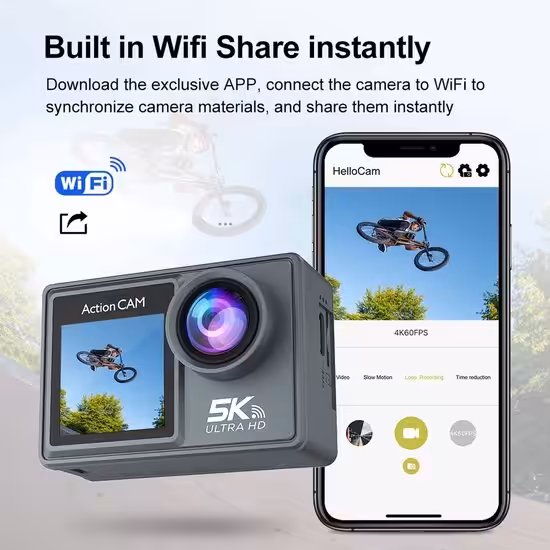 De NovaWare 5K Action Camera legt jouw avonturen vast in haarscherpe 5K-resolutie met 60FPS en 24MP foto’s. Dankzij beeldstabilisatie, waterdichte behuizing (tot 30M), Wi-Fi bediening en een complete set accessoires ben je direct klaar voor actie – zowel boven als onder water.