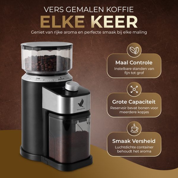 Met de NovaWare Koffiemolen ben je verzekerd van een constante, uniforme maling. Dankzij de 40 maalgraadinstellingen kun je de koffie precies aanpassen aan je voorkeuren. Of je nu een krachtige espresso wilt of een milde filterkoffie, deze elektrische koffiemolen biedt de ideale maling voor jouw favoriete zetmethode.