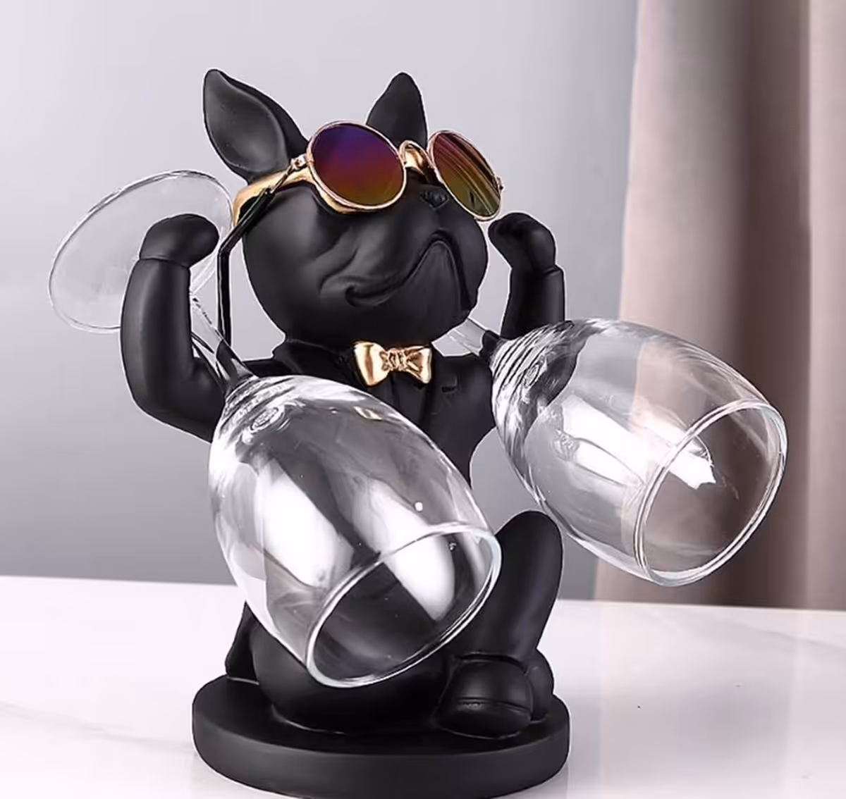 Ontdek de perfecte mix van elegantie en functionaliteit met ons exclusieve Franse Bulldog beeld! Dit stijlvolle meesterwerk in zwart en goud is niet alleen een eyecatcher voor je interieur én een praktisch wijnrek en wijnhouder.