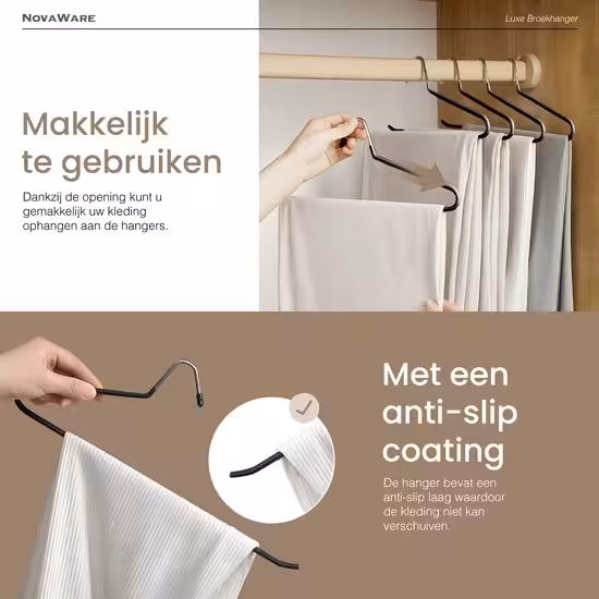 Optimaliseer je kledingkast met de NovaWare® Luxe Broekhanger – 20 stuks
