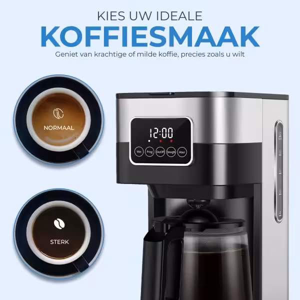 Met het NovaWare Koffiezetapparaat geniet je elke dag van de perfecte kop koffie, precies zoals jij hem wilt. Of je nu ’s ochtends wakker wilt worden met de geur van versgezette koffie of een pot wilt zetten voor visite, dit koffiezetapparaat combineert gemak, stijl en smaak in één. Met ruimte voor 12 kopjes per keer, een moderne touchscreen bediening en een warmhoudfunctie van 45 minuten, is dit apparaat dé aanwinst voor jouw keuken.