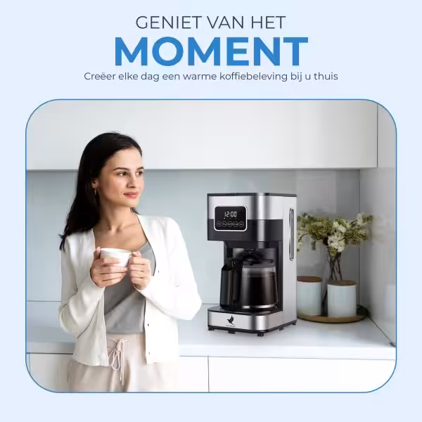 Dankzij de handige uitstelfunctie zet je ’s avonds alles al klaar, zodat je ’s ochtends meteen kunt genieten van een vers gezette pot koffie. Ideaal voor drukke ochtenden of wanneer je visite verwacht.
