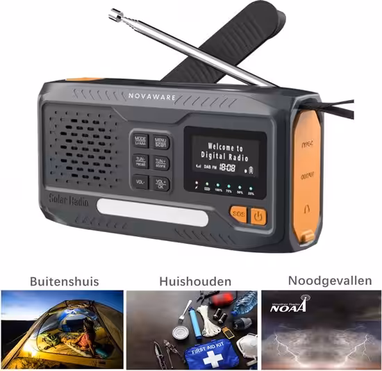 • Weerbestendig ontwerp: De NovaWare Noodradio DAB solar opwindbaar is ontworpen om onder alle omstandigheden te presteren. Het duurzame en weerbestendige ontwerp maakt het apparaat ideaal voor outdoor activiteiten zoals kamperen, hiking en survivaltochten.