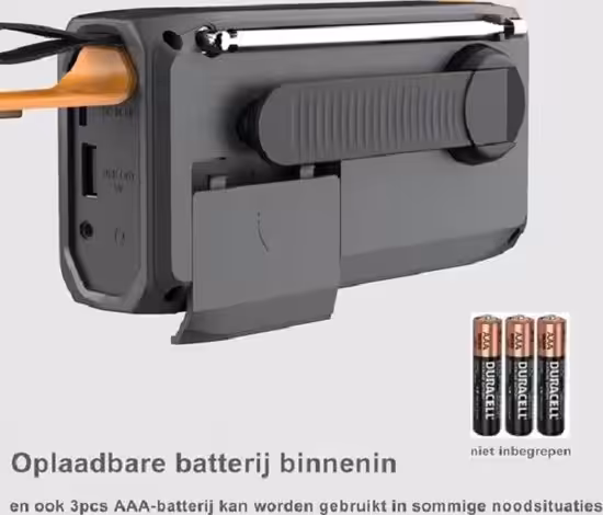 • Ingebouwde LED-zaklamp: De noodradio beschikt over een krachtige LED-zaklamp, die je kunt gebruiken om je weg te vinden in het donker of om noodsignalen te geven. Dit maakt het apparaat perfect voor noodsituaties of nacht expedities.