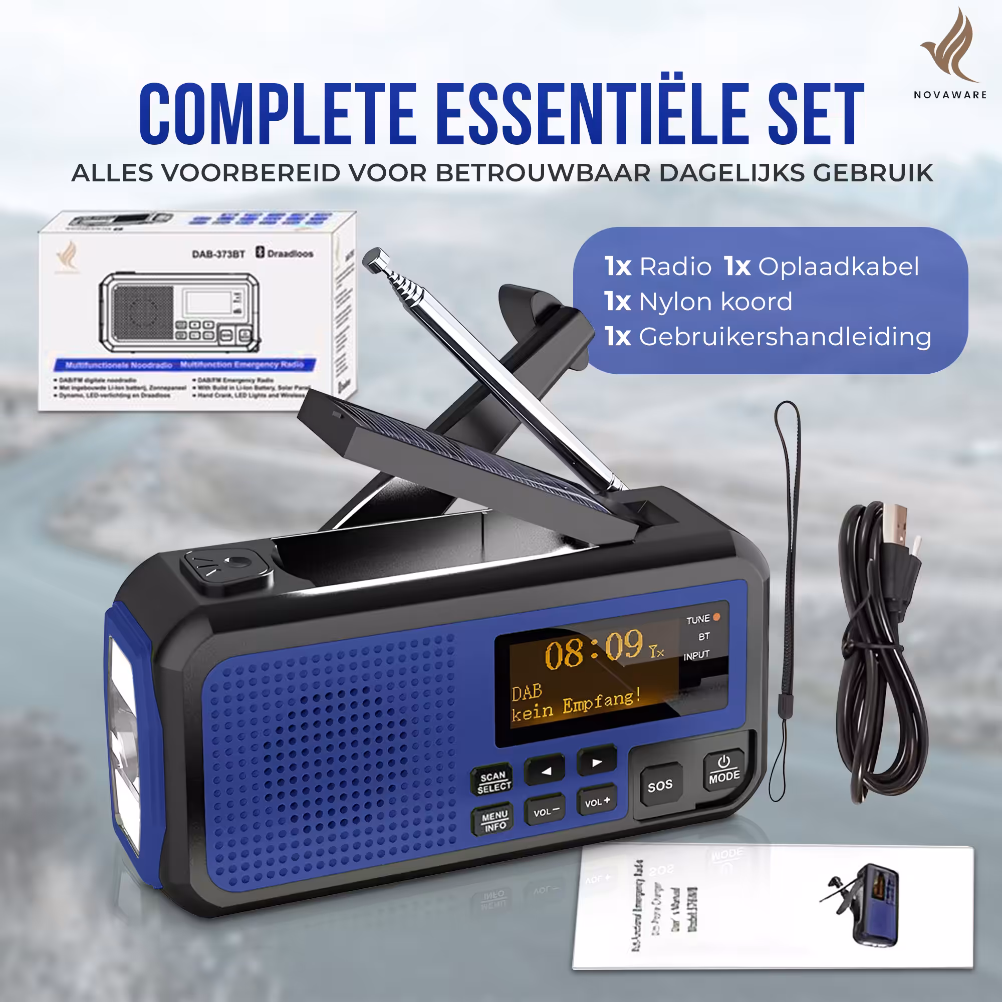 Met de NovaWare Noodradio Solar opwindbaar ben je altijd voorbereid, waar je ook bent. Of je nu gaat kamperen, geniet van een outdoor avontuur of simpelweg wilt zorgen dat je nooit zonder stroom of informatie komt te zitten in noodsituaties, deze draagbare radio heeft het allemaal. De NovaWare Noodradio combineert een krachtige 5000mAh powerbank op zonne-energie, een DAB+/FM-radio voor betrouwbare nieuws- en weerupdates, en een handige Bluetooth speaker in één compact en robuust apparaat. Deze noodradio DAB+ is een onmisbare toevoeging voor elk noodpakket en perfect voor iedereen die graag voorbereid is op het onverwachte.