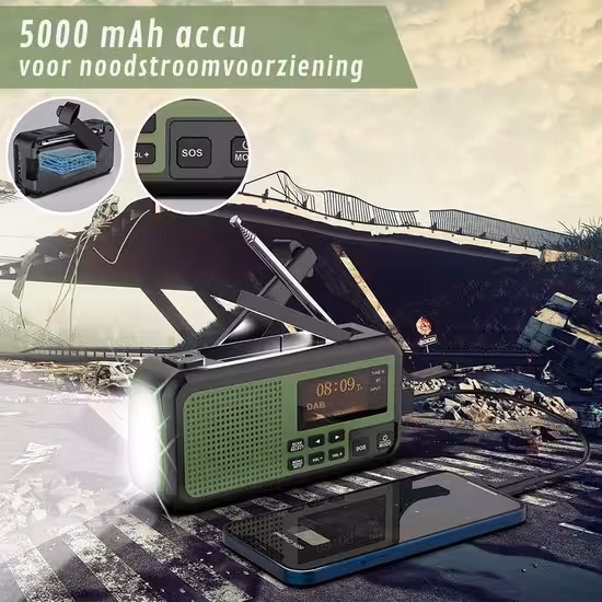 Met de NovaWare Noodradio Solar opwindbaar ben je altijd voorbereid, waar je ook bent. Of je nu gaat kamperen, geniet van een outdoor avontuur of simpelweg wilt zorgen dat je nooit zonder stroom of informatie komt te zitten in noodsituaties, deze draagbare radio heeft het allemaal. De NovaWare Noodradio combineert een krachtige 5000mAh powerbank op zonne-energie, een DAB+/FM-radio voor betrouwbare nieuws- en weerupdates, en een handige Bluetooth speaker in één compact en robuust apparaat. Deze noodradio DAB+ is een onmisbare toevoeging voor elk noodpakket en perfect voor iedereen die graag voorbereid is op het onverwachte.
