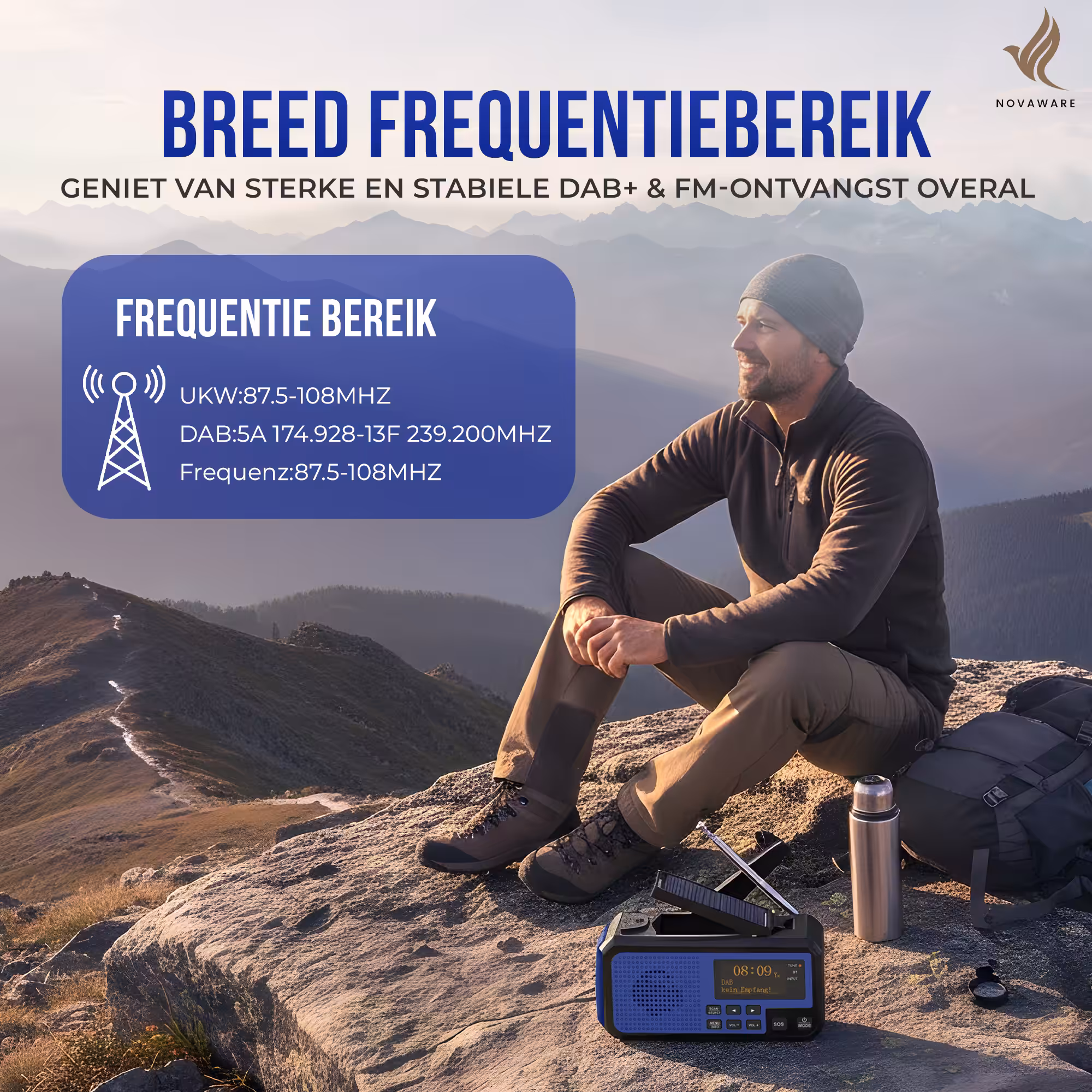 Met de NovaWare Noodradio Solar opwindbaar ben je altijd voorbereid, waar je ook bent. Of je nu gaat kamperen, geniet van een outdoor avontuur of simpelweg wilt zorgen dat je nooit zonder stroom of informatie komt te zitten in noodsituaties, deze draagbare radio heeft het allemaal. De NovaWare Noodradio combineert een krachtige 5000mAh powerbank op zonne-energie, een DAB+/FM-radio voor betrouwbare nieuws- en weerupdates, en een handige Bluetooth speaker in één compact en robuust apparaat. Deze noodradio DAB+ is een onmisbare toevoeging voor elk noodpakket en perfect voor iedereen die graag voorbereid is op het onverwachte.