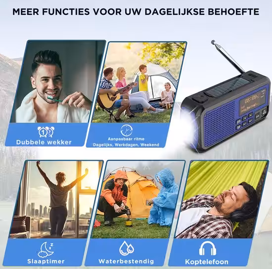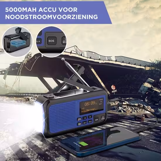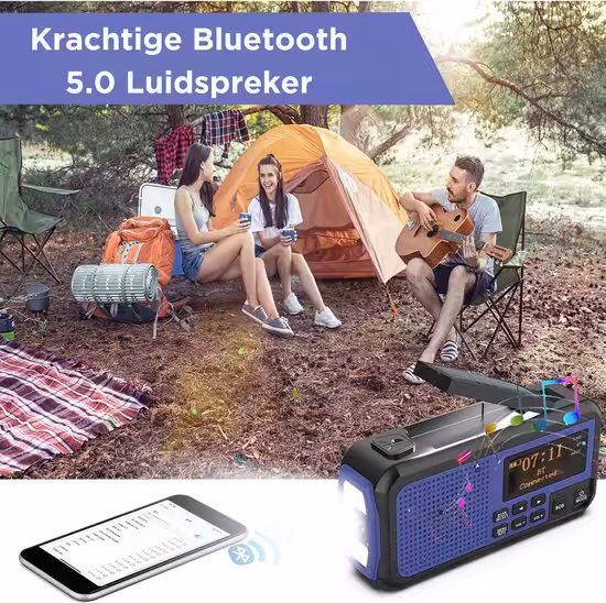 Met de NovaWare Noodradio Solar opwindbaar ben je altijd voorbereid, waar je ook bent. Of je nu gaat kamperen, geniet van een outdoor avontuur of simpelweg wilt zorgen dat je nooit zonder stroom of informatie komt te zitten in noodsituaties, deze draagbare radio heeft het allemaal. De NovaWare Noodradio combineert een krachtige 5000mAh powerbank op zonne-energie, een DAB+/FM-radio voor betrouwbare nieuws- en weerupdates, en een handige Bluetooth speaker in één compact en robuust apparaat. Deze noodradio DAB+ is een onmisbare toevoeging voor elk noodpakket en perfect voor iedereen die graag voorbereid is op het onverwachte.