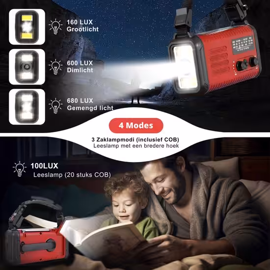 Met de NovaWare Noodradio Solar opwindbaar ben je altijd voorbereid, waar je ook bent. Of je nu gaat kamperen, geniet van een outdoor avontuur of simpelweg wilt zorgen dat je nooit zonder stroom of informatie komt te zitten in noodsituaties, deze draagbare radio heeft het allemaal. De NovaWare Noodradio combineert een krachtige 20.000mAh powerbank op zonne-energie en een FM/AM-radio voor betrouwbare nieuws- en weerupdates in één compact en robuust apparaat. Inclusief kompas, reddingsfluitje en snijmesje gevestigd aan deze noodradio is het een onmisbare toevoeging voor elk noodpakket en perfect voor iedereen die graag voorbereid is op het onverwachte.