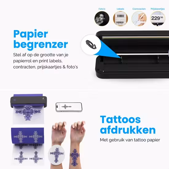 Of je nu verzendlabels, barcode labels, stickers of tijdelijke tattoos wilt afdrukken, de NovaWare Thermische Printer A4 is de oplossing voor jouw printbehoeften – draadloos, compact en kostenefficiënt!