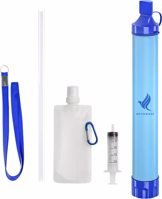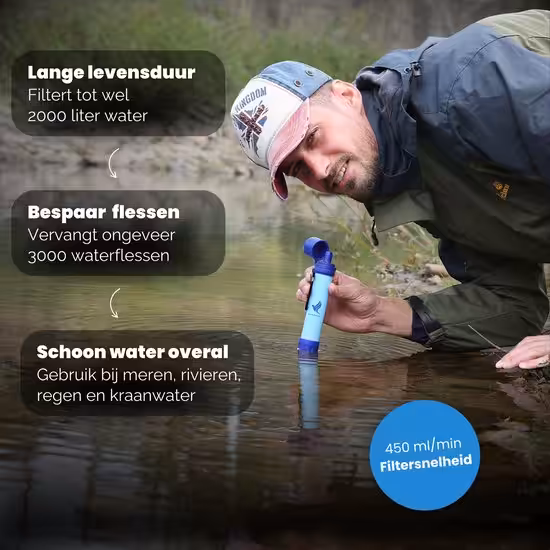 Altijd schoon drinkwater bij de hand – waar je ook bent! De NovaWare® Waterfilter Survival Set is dé oplossing voor kampeerders, reizigers, wandelaars en preppers. Met een indrukwekkende capaciteit van 2000 liter biedt dit waterfilter langdurige bescherming tegen vervuild water – ideaal voor outdoor gebruik en noodsituaties. Filter direct water uit meren, rivieren, plassen of kranen zonder bijsmaak of chemische toevoegingen. Lichtgewicht, compact én eenvoudig in gebruik. Perfect voor in elk noodpakket of rugzak.